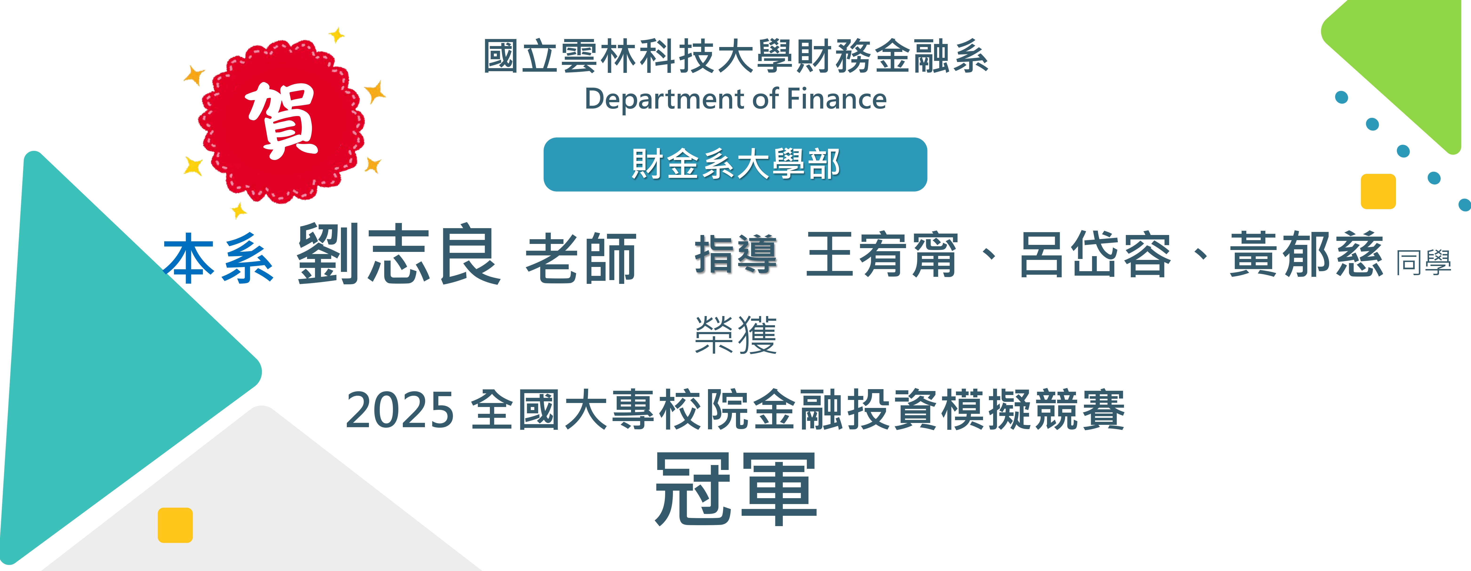 賀!本系劉志良老師指導指導王宥甯、呂岱容、黃郁慈同學 榮獲 2025全國大專校院金融投資模擬競賽 冠軍