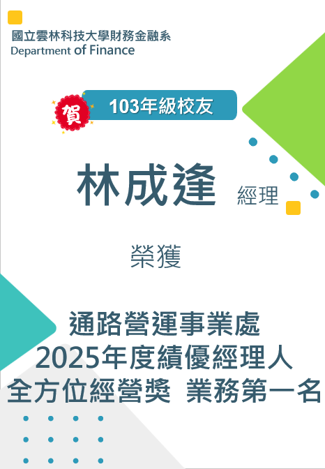 賀!103年級校友 林成逢 經理 榮獲 通路營運事業處 2025年度績優經理人 全方位經營獎 業務第一名