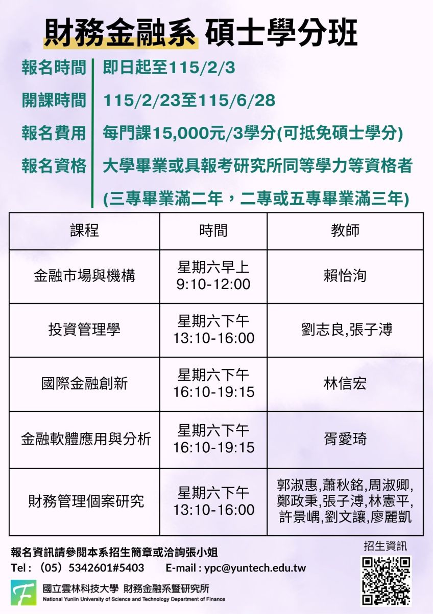 【主辦單位】 國立雲林科技大學 財務金融所推廣班