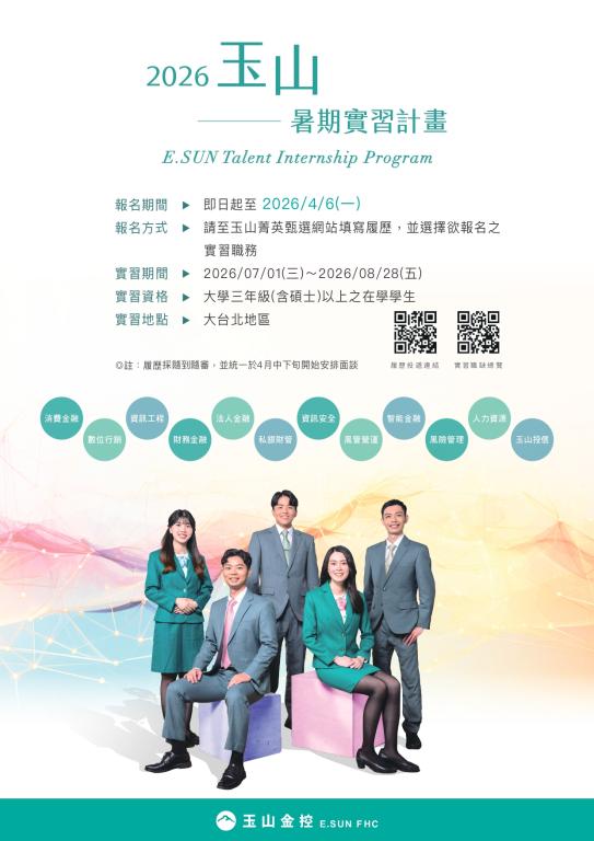 【實習】2026 玉山銀行暑期實習計畫